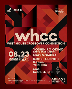 関西を拠点に活動するハウス・クロスオーヴァー・テックハウスのDJ達が集うパーティー “WEST HOUSE CROSSOVER CONNECTION”!