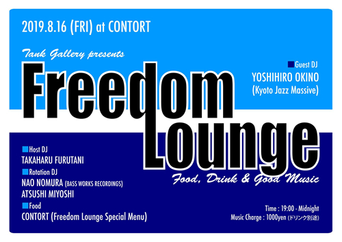 ラウンジスペースはKANSAI CROSSOVER JAZZ DJs達が担当し、ブギー、ソウルからクロスオーヴァー、ハウス等のFREEDOM TIMEサウンドをプレイ予定。
