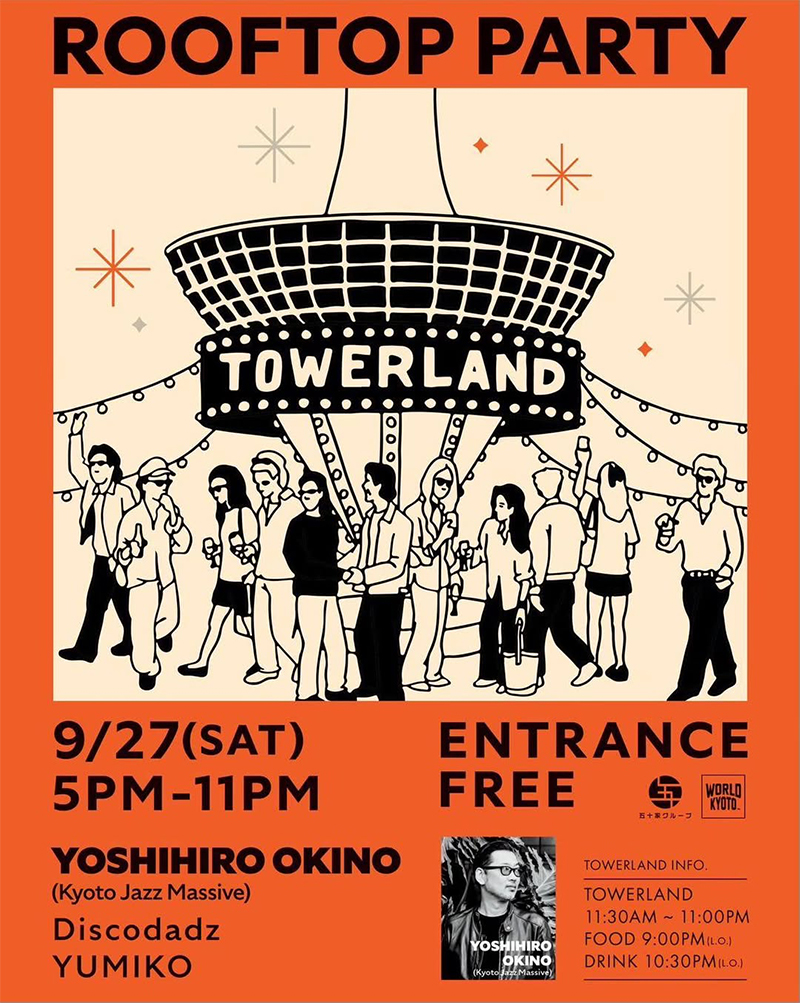 9/27(SAT)は京都タワーにあるルーフトップ・レストランTOWERLANDにてDJします!
